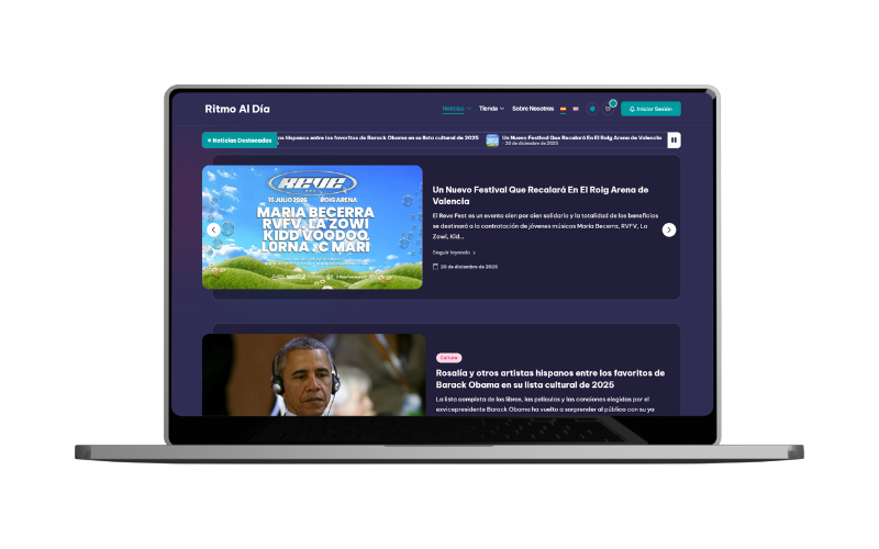 Ritmo Al Día fue una página web creada con el objetivo de mantener a los usuarios informados sobre las últimas noticias del mundo de la música actual. El proyecto reunía novedades, lanzamientos y actualidad musical en un solo espacio, ofreciendo una experiencia informativa dinámica y accesible.